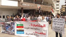 ورفع المحتجون لافتات"المنصورة بتقولها قوية.. مصر دولة مدنية"، "دستور مصري مدني.. معاصر حديث" ، "حد أدنى للأجور"،" الدستور لكل المصريين"، "احنا عملنا ثورة علشان نحارب الطغيان باسم الأغلبية" لان الأغلبية متغيرة لكن الحرية والكرامة ومصر لا يتغيرون".
