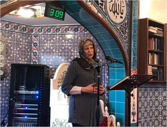 وكانت رئيسة الوزراء البريطانية «تيريزا ماي» قد اصطُحبت مع عشرات من البريطانيين في جولات على المساجد واستمعت لتلاوة من القرآن الكريم، وحظيت بضيافة قدم فيها الكعك المنزلي الصنع.
