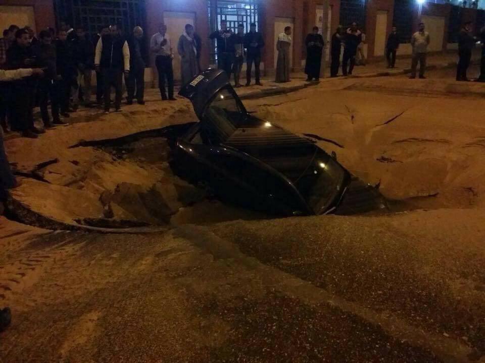 فوجئ سكان منطقة التجمع الخامس، صباح اليوم الإثنين، بابتلاع سيارة ملاكي نتيجة حدوث هبوط أرضي تسبب في وقوع انهيار وإحداث حفرة طولها 4 أمتار بأحد الشوارع الجانبية المتفرعة من شارع التسعين؛ بسبب كسر في ماسورة مياه.