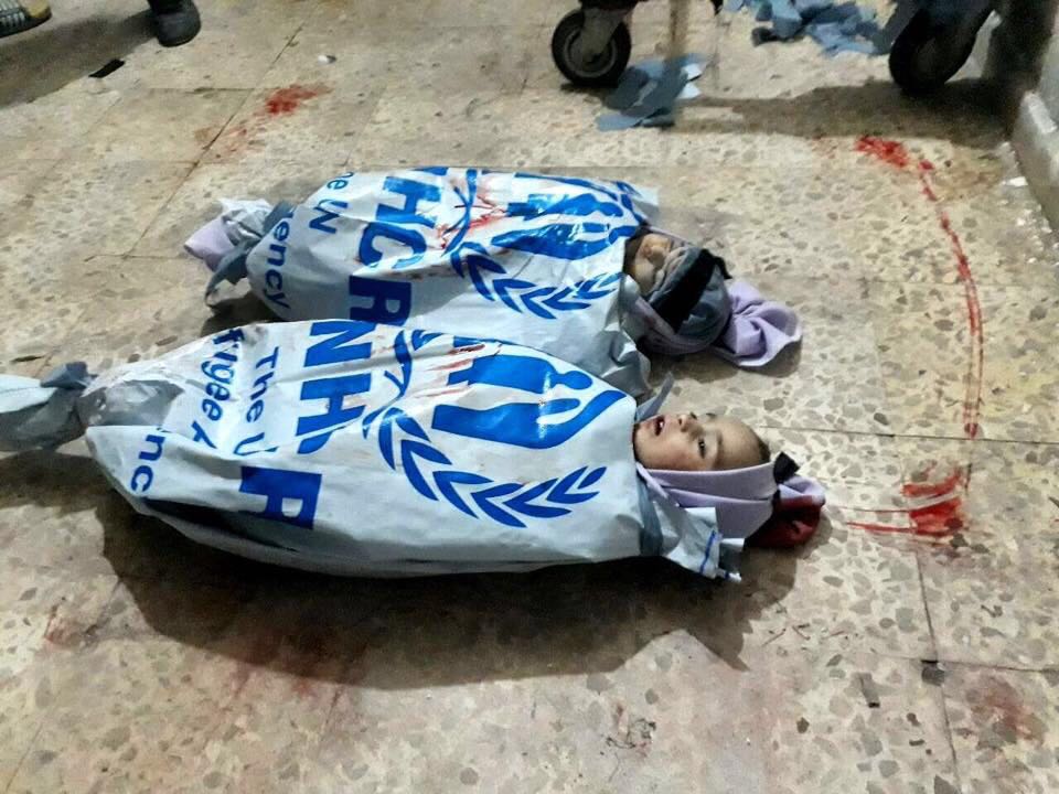 رسالة من أهالي الغوطة الشرقية إلى الأمم المتحدة بأجساد أطفالهم الشهداء فهل وصلت الرسالة أيتها الأمم ؟!