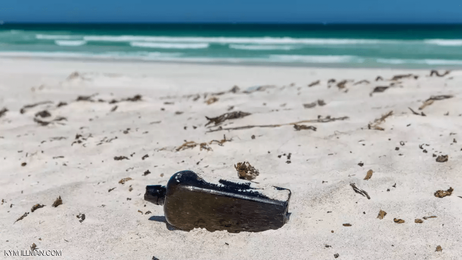 أثناء رحلتهما على الرمال في جزيرة ويدج (غربي أستراليا) في يناير الماضي، عثر الزوجان «كيم إيلمان» و«تونيا» على زجاجة بداخلها رسالة، واستخدماها قطعة ديكور فقط، قبل أن يعرفا قيمتها التاريخية المهمة.