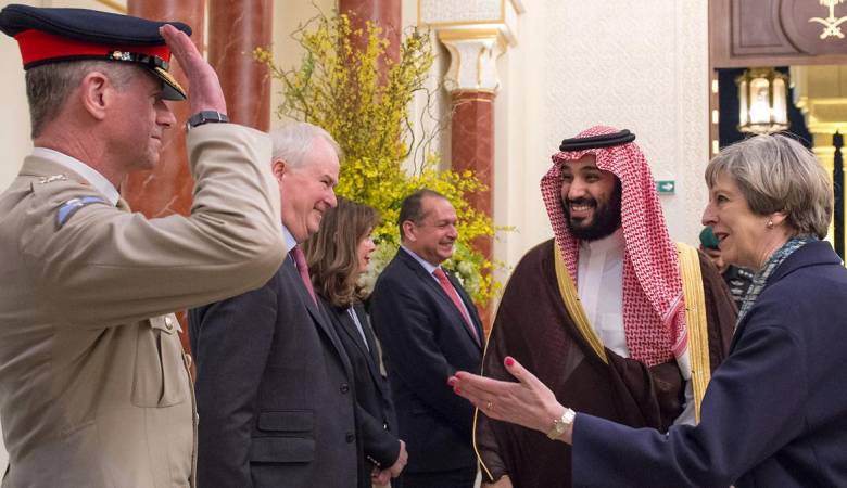 وأوضح، أن «الأبهة التي نحن بصددها إلا للاحتفاء بوصول محمد بن سلمان، ولي عهد المملكة العربية السعودية، التي تتوق شركة إيروسبيس البريطانية إلى بيعها جيلها القادم من طائرات تايفون المقاتلة، فلولا طلبات الاستيراد القادمة من سلاح الجو السعودي، لكانت أنوار مصانع الشركة في لانكشير قد أطفئت قبل وقت طويل».