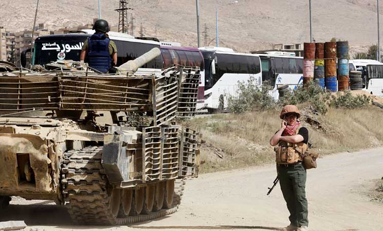 وقالت خلية «الإعلام الحربي المركزي» إن «خمس حافلات تقل عددا من المسلحين وعائلاتهم خرجت حتى اللحظة من داخل حرستا، ويتم تجميع حافلات الدفعة الأولى في منطقة دوار الثانوية في المدينة، وعند اكتمال عددها سوف تنطلق باتجاه محافظة إدلب دفعة واحدة».