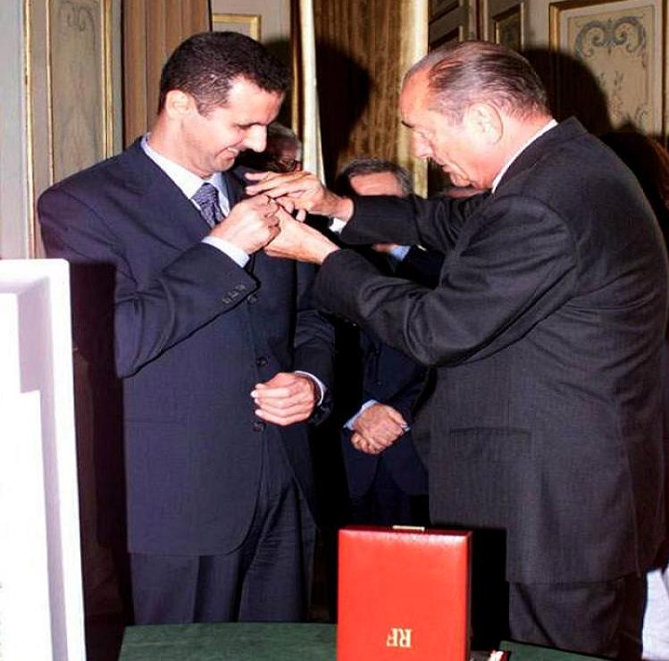 أعلنت الحكومة الفرنسية أمس الاثنين بدء الإجراء التأديبي لسحب وسام جوقة الشرف من بشار الأسد، الذي حصل عليه عام 2001 من مرتبة «الصليب الأكبر» في عهد جاك شيراك، الذي كان يراه أملًا وصاحب مشروع إصلاحات للشعب السوري.