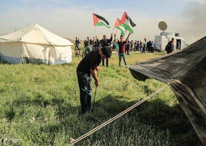 كان جرى إقامة خيام العودة على بُعد 700 متر من السياج الفاصل مع إسرائيل بشكل أكثر قربا عن بدء نصبها على أطراف شرق قطاع غزة في الـ30 من الشهر الماضي عندما انطلقت مسيرة العودة الكبري.