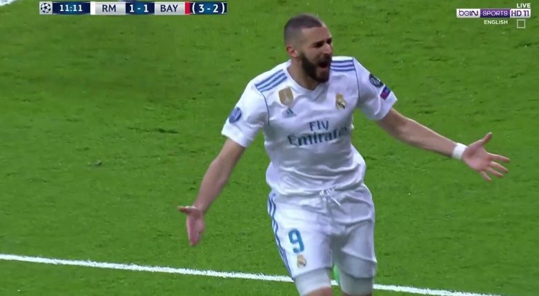 ونجح الريال في إدراك التعادل في الدقيقة 11 بعرضية متقنة من مارسيلو وصلت إلى كريم بنزيمة الذي حولها برأسية إلى شباك بايرن ميونيخ.