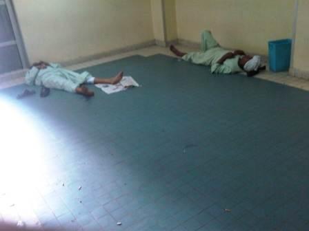 كما أن صالة الزيارة نفسها هي عبارة عن ساحة خالية إلا من بعض كراسي مما يجعل الزائرين يجلسون فوق الجرائد بعد أن يفترشوها أرضا أو ينامون على الأرض وهو ما جعلها أشبه برصيف في الشارع فالقاعة تملؤها أعقاب السجائر والعلب الفارغة، ولكن هناك ما هو اكثر من ذلك؛ حيث وجدنا غرفة تحمل رقم 7 وبها سرير واحد فقط وظننا أن بها مريضًا ولكن السرير كان خاليًا تماما وأرضية الغرفة كانت محطمة تمامًا فظننا أن بها صيانة ولكننا اكتشفنا أن الممرضين والممرضات هم السبب حتى يجعلوا منها غرفة نوم لهم واستغلوا السرير للنوم عليه أثناء النبطشيات، وبالتالي لم يكلفوا نفسهم عناء الإبلاغ عنها لإصلاحها، فهو ملاذ آمن لهم يختبئون فيه ليلًا للنوم، بعيدًا عن أعين المرافقين للمرضى، كما أن هناك بعض الغرف ومن المفترض أنها مراحيض من أجل بعض المرضي الذين لديهم حالات خاصة فكل غرفة مزودة بمرحاض خاص بها لكن هناك مراحيض للاستحمام بها حوض أستحمام "بانيو" ولكن عمال النظافة استغلوها لتكون غرفة لتخزين أدواتهم وغرفة تغيير لملابسهم، ولما لا طالما أنه لا أحد يسأل عن شيء والمواطنون يجهلون حقوقهم والسلبية هي الشعار الأوحد.