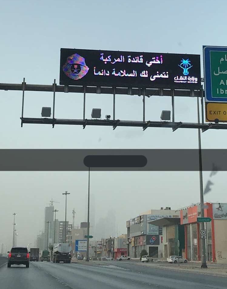 ورحبت بالقرار لافتات نشرتها إدارة المرور السعودية حملت توجيهات للمرأة السعودية للمرة الأولى في تاريخ المملكة.