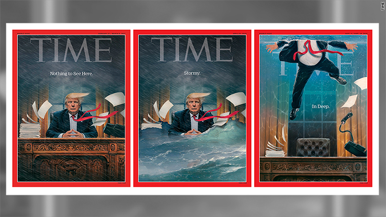 ظهر الرئيس الأميركي، دونالد ترامب، بشكل غريب على غلاف عدد شهر سبتمبر، من مجلة “تايم” الأميركية، حيث ظهر غارقا في دوامة من المشاكل فوق مكتبه في البيت الأبيض.