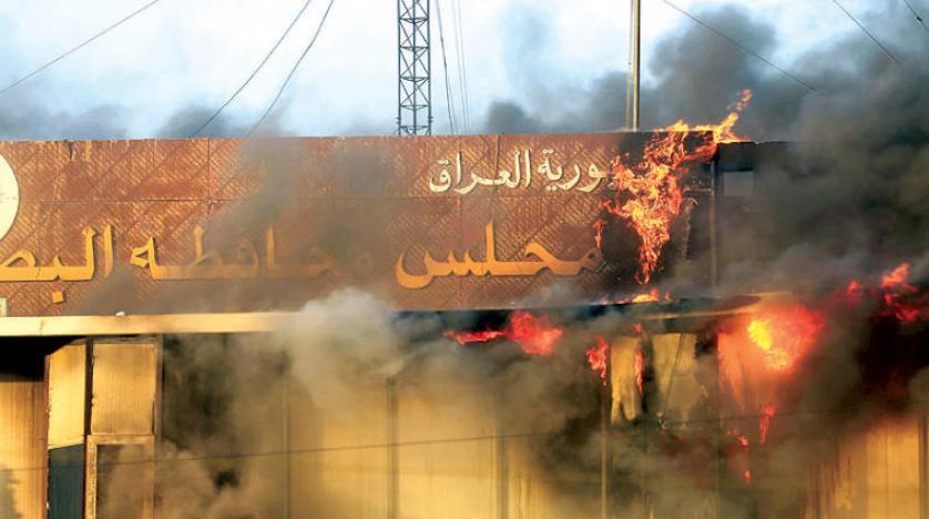 وشهدت الأيام الماضية، حرق العديد من مقرات الحركات والأحزاب السياسية، بالإضافة لمباني حكومية، ما دفع الحكومة العراقية لفرض حظرا للتجول ونشر قوات الجيش في شوارع المدينة.