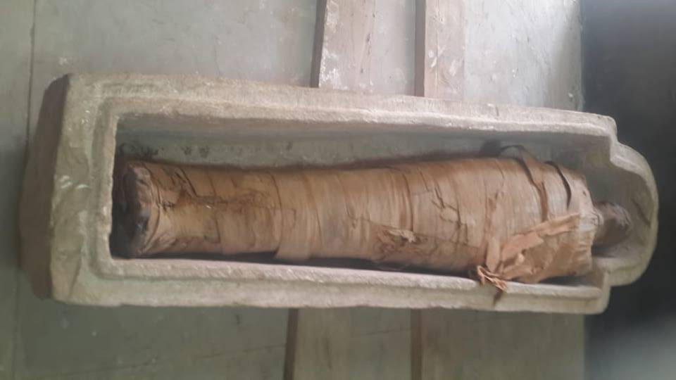 ووفق بيان للوزارة، «تمكنت البعثة الأثرية المصرية العاملة بموقع الأغاخان في البر الغربي بأسوان، من الكشف عن تابوت من الحجر الرملي ذو غطاء منحوت بهيئة آدمية، وبداخله مومياء سليمة وملفوفة بالكتان، داخل مقبرة تعود إلى العصر الفرعوني المتأخر(1085-332 ق.م)».