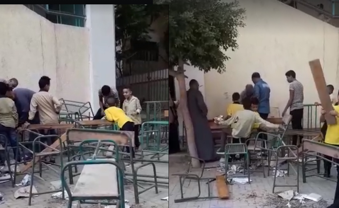 أثار مقطع فيديو متداول لطلاب مدرسة التحرير ببولاق الدكرور بمحافظة الجيزة، يحاولون إصلاح المقاعد الدراسية بحوش المدرسة، للجلوس عليها، في أول أيام العام الدراسي، حالة من الاستياء بين أولياء الأمور.