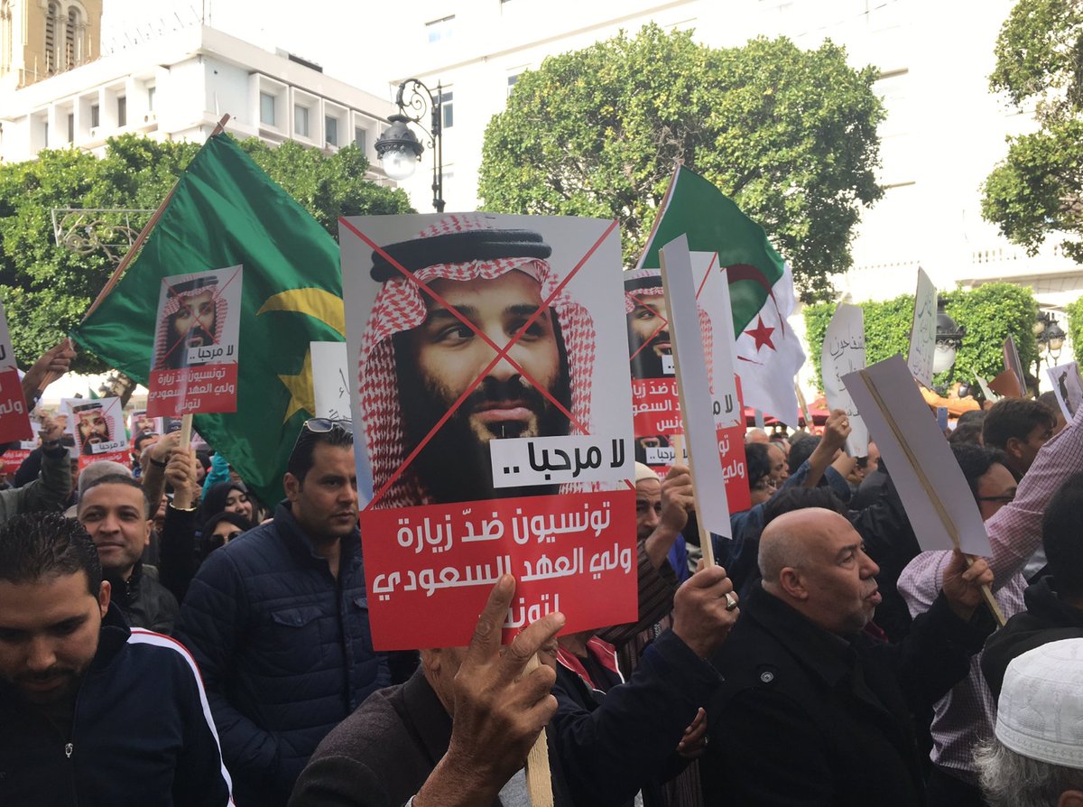 ويشهد قلب العاصمة التونسية حاليا مسيرة احتجاجية رفضا لزيارة بن سلمان.