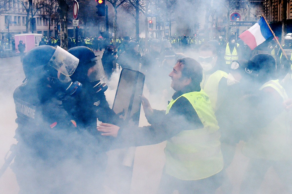وأطلقت شرطة مكافحة الشغب، الغاز المسيل للدموع والرصاص المطاطي على المحتجين الذين حاولوا كسر الطوق الأمني في شارع الشانزليزيه الشهير وسط العاصمة الفرنسية.