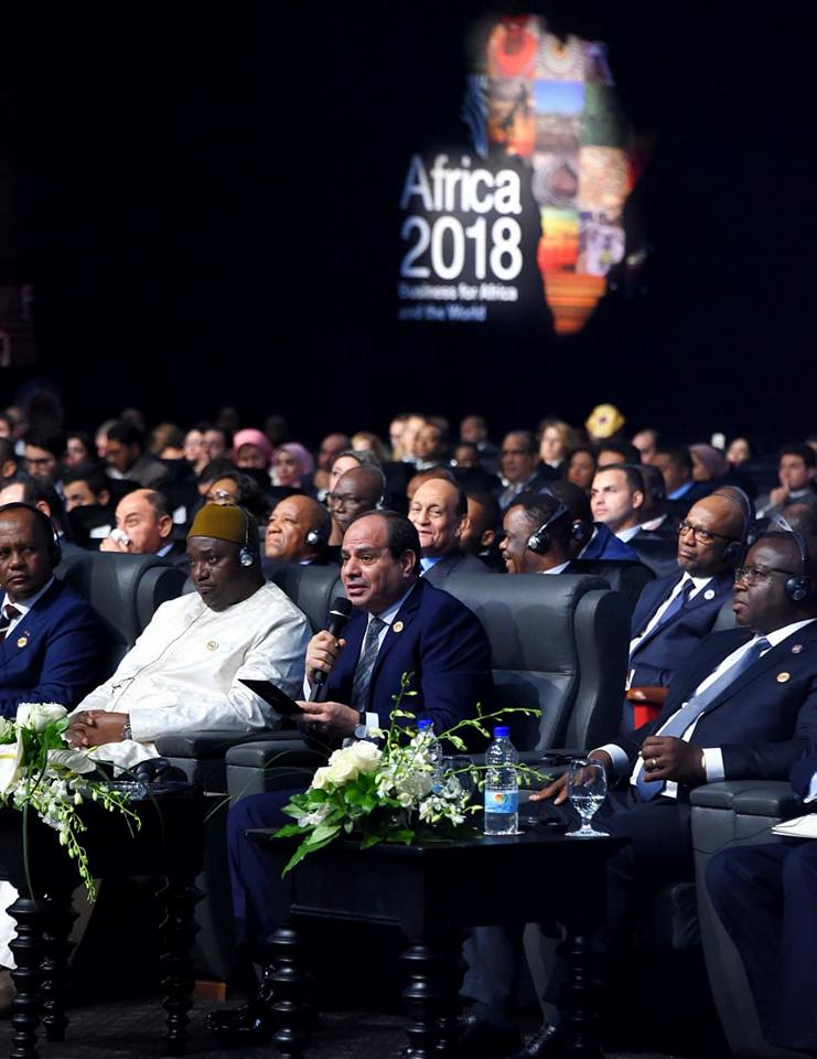 واختتم السيسي كلمته قائلاً مخاطبا الحضور: “إن العالم ينظر إلى قارتكم باعتبارها أرض الفرص الواعدة، وعلى أنها مؤهلة لتحقيق معدلات مرتفعة للنمو الاقتصادي المستدام، في ظل ما تمتلكه من موارد بشرية وثروات هائلة ومتنوعة، وهو ما يضعنا أمام تحد كبير، لتحقيق مستويات معيشة كريمة لجميع مواطني القارة، ولا يفوتني في هذا الصدد أن أؤكد أهمية استغلال طاقات الشباب الأفريقي الكامنة، ودعم أفكارهم، وذلك من خلال إتاحة التمويل للمشروعات المنتجة، التي توفر لهم فرص العمل، وتدعم اقتصادات دولهم، فضلاً عن إتاحة المزيد من التمكين الاقتصادي للمرأة الأفريقية، والقضاء على كل أشكال العنف والتمييز ضدها، حيث أنها تمثل ركيزة أساسية للتنمية وأحد مكوناتها الفاعلة”.