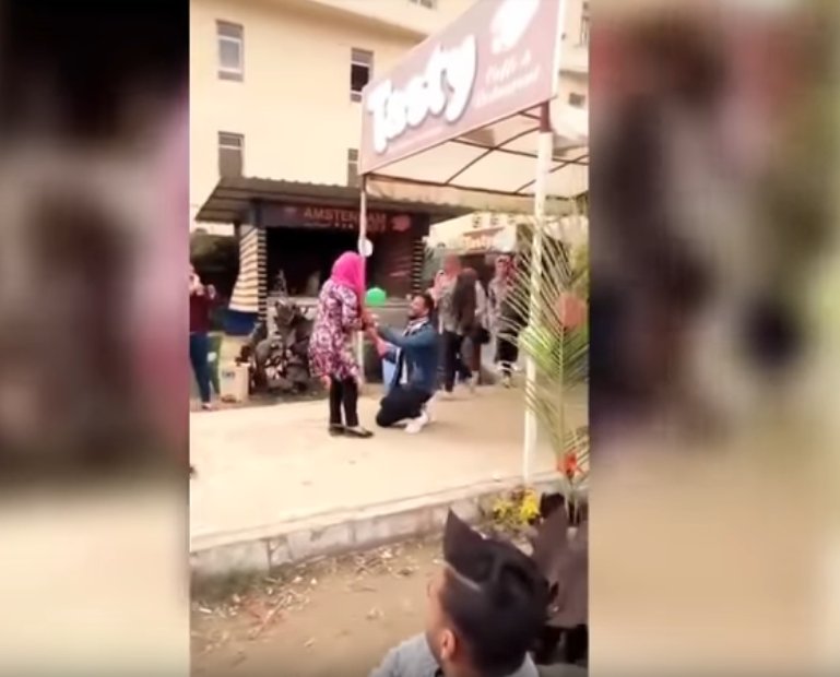 قرر مجلس التأديب بكلية الحقوق جامعة المنصورة، اليوم الإثنين، فصل الطالب محمود رمضان، بالفرقة الأولى، لمدة عامين دراسيين، في الواقعة المعروفة إعلاميا بـ «فيديو الحضن»، حيث ظهر وهو يحتضن زميلة له تدرس بكلية اللغة العربية جامعة الأزهر في ساحة الجامعة، ويهديها باقة من الورود وهو يجلس على إحدى ركبتيه.