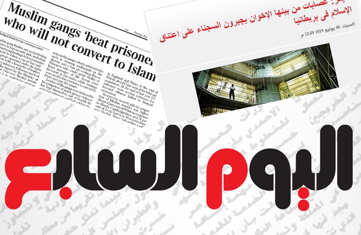 ونشرت جريدة “اليوم السابع” تقريرا يوم السبت 8 يونيو 2019 تحت عنوان (تايمز: عصابات من بينها الإخوان يجبرون السجناء على اعتناق الإسلام في بريطانيا)، حيث نسبت الصحيفة معلومات مفبركة وعارية عن الصحة بالكامل لكل من جريدة “التايمز” البريطانية واسعة الانتشار ولتقرير حكومي صادر عن وزارة العدل البريطانية، وجاء في مزاعم التقرير أن “مجموعات تابعة لجماعة الإخوان المسلمين موجودة في السجون البريطانية وتمارس أعمال البلطجة وإجبار السجناء غير المسلمين على اعتناق الدين الإسلامي”.