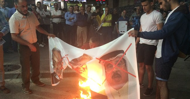 أحرق مئات المتظاهرين الفلسطينيين، مساء الأحد، في مخيم الدهيشة للاجئين الفلسطينيين في بيت لحم بالضفة الغربية، صورا لملك البحرين حمد بن عيسى آل خليفة، وترامب ونتنياهو.، رفضا لورشة البحرين وتنديدا بالمشاركة العربية فيها.