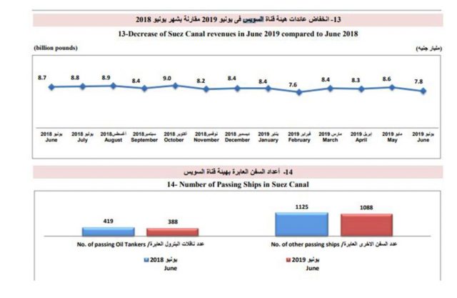 أعلن الجهاز المركزي للتعبئة العامة والإحصاء انخفاض إيرادات قناة السويس بنسبة تجاوزت 10% في يونيو الماضي، وبنسبة 1.4% خلال النصف الأول من العام الجاري.