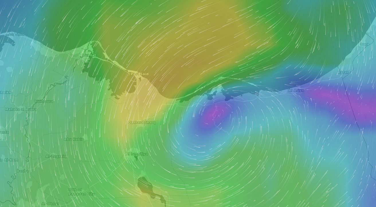 ويغطي الإطار الخارجي للإعصار مدن الإسماعيلية والسويس بكثافة أمطار متوسطة.