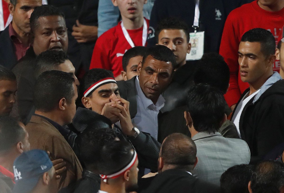 وقامت قوات الأمن بانتزاع العلم منه وتكميم فمه، واقتياده من مدرجات الملعب إلى الخارج أثناء المباراة، وسط هتافات الحضور المطالبة بتركه.