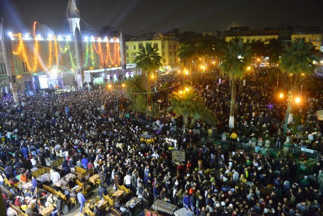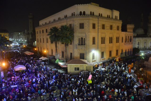 والتقطت عدسة «رصد» العديد من مشاهد الاحتفالات بالعاصمة، حيث يتربع مسجد الحسين القاهرة القديمة، مقابلا الجامع الأزهر.