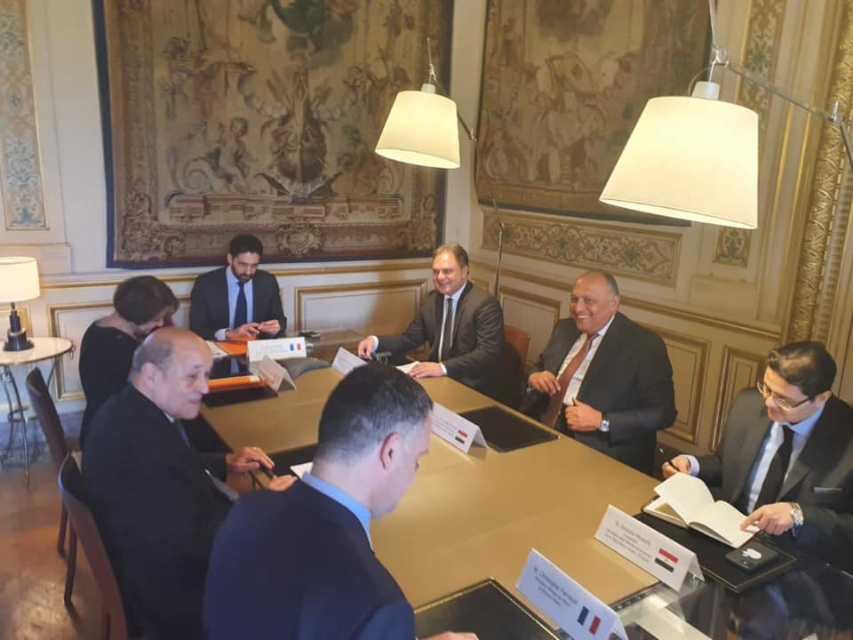 وصرح المتحدث الرسمي باسم وزارة الخارجية، بأن شكري «أشاد خلال المباحثات بالمستوى المتميز للتعاون الثنائي بين البلدين في مختلف المجالات، والتطلع لاستمرار التعاون الوثيق في دفع العلاقات الاستراتيجية بين مصر وفرنسا ومواصلة التنسيق في الملفات الإقليمية والدولية».