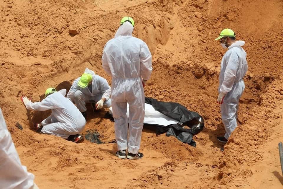 والجمعة، أعلن الجيش الليبي العثور على 3 مقابر جماعية في مدينة ترهونة ومحيطها، تضاف إلى 8 أخرى عثر عليها بالمدينة في الأيام القليلة الماضية، بمناطق كانت تسيطر عليها قوات حفتر.