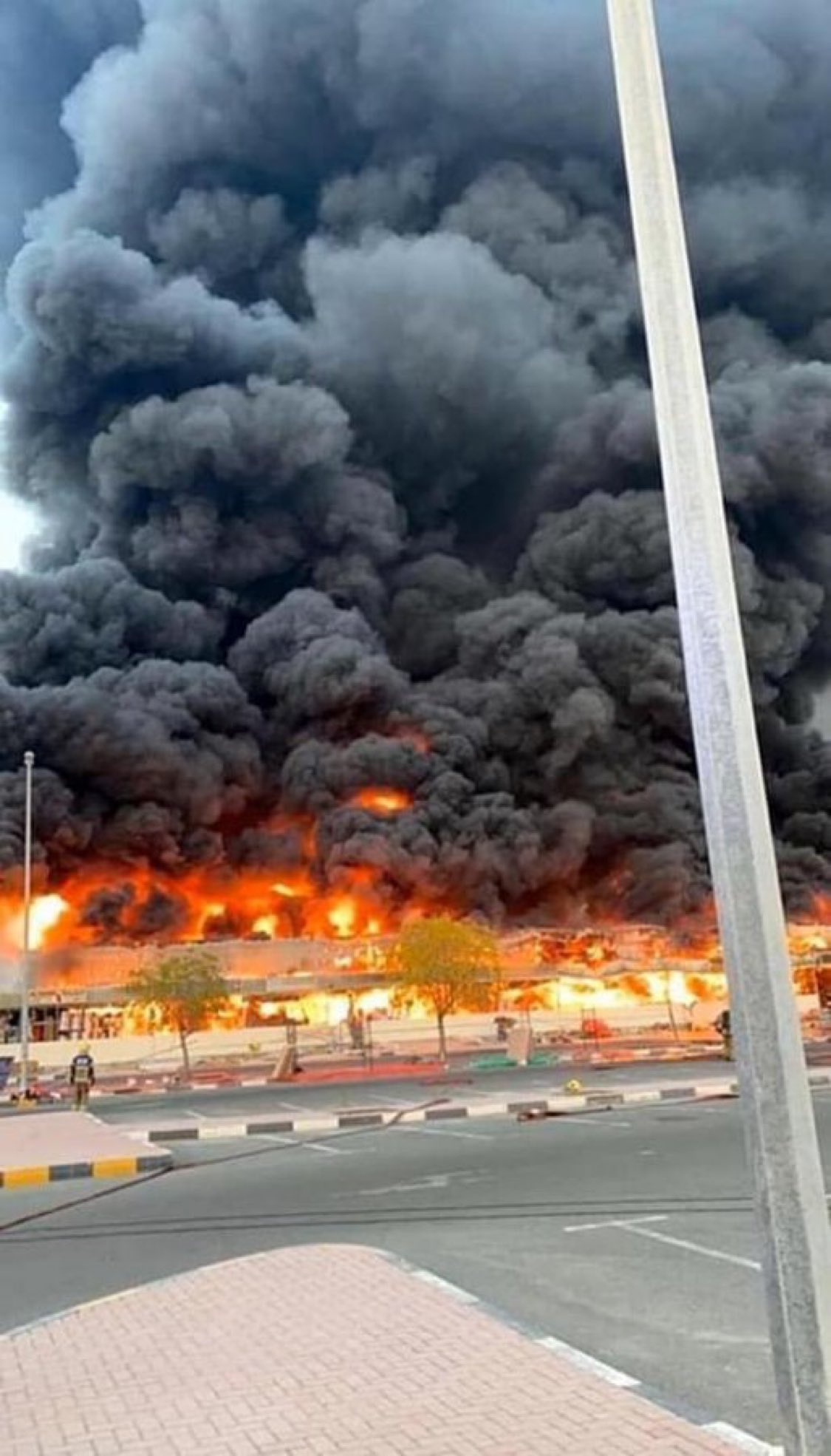 اندلع حريق هائل، الأربعاء، داخل سوق في إمارة عجمان بالإمارات.