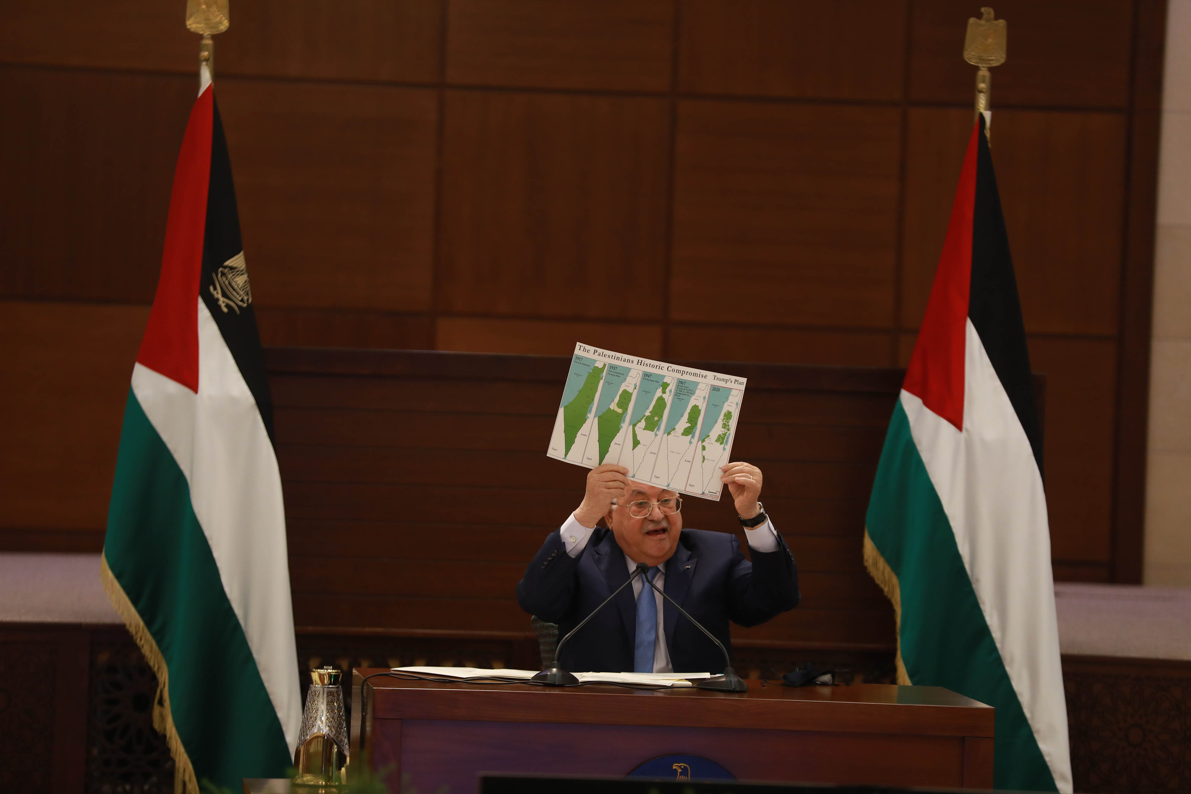 وقال عباس: لن أجلس على طاولة فيها صفقة القرن، من يقبل بالضم خائن للوطن وبائع للقضية ولذلك نحن رفضناها.