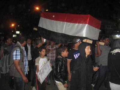 و انطلق المتظاهرون في مسيرة من ميدان الدهار إلى ميدان السقالة حاملين النعوش , ومطالبين بالقصاص للأبطال الذين ضحوا بأرواحهم حتى يحصل الشعب على الحرية.