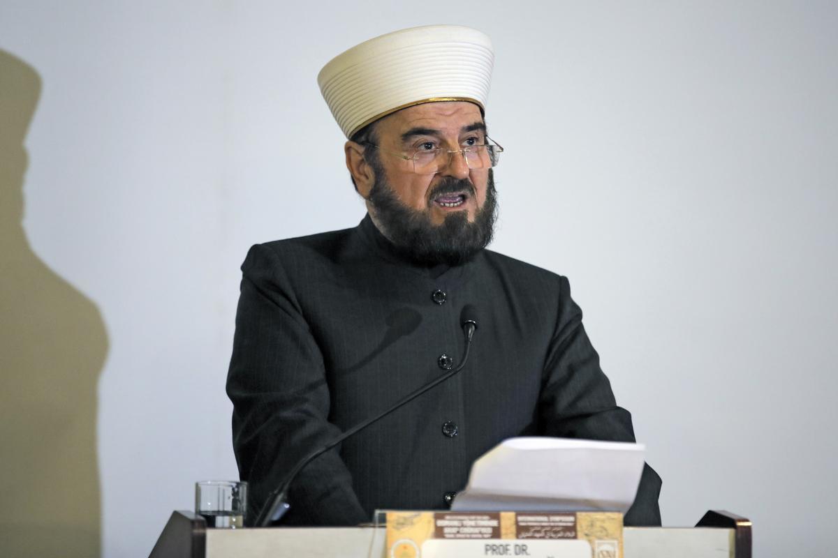 قال أمين عام الاتحاد العالمي لعلماء المسلمين، «علي محيي الدين القرة داغي»، الجمعة، للرئيس الفرنسي إيمانويل ماكرون، إن الإسلام «لا يتحمل وزر قيادات كرتونية مزيفة من صناعتكم»، مؤكدًا أن «الدين الإسلامي لا يمر بأي أزمات».