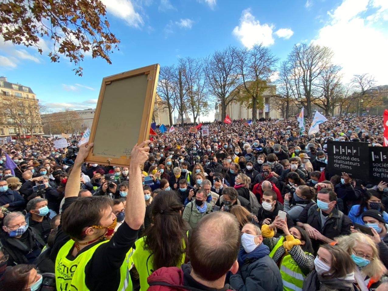 شارك آلاف من الفرنسيين في احتجاجات ومسيرات تجوب باريس ضد ماكرون والسلطات الفرنسية بعد طرح قانون “الأمن الشامل” لحماية الشرطة، الذي يؤكد النشطاء أنه لقمع الحريات.