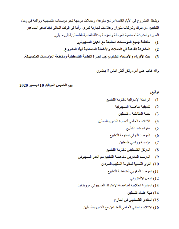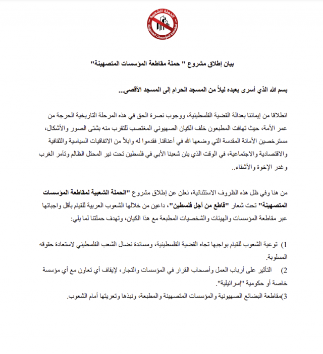بيان إطلاق مشروع قاطع من أجل فلسطين
