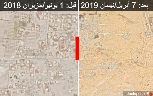 ووجد التحليل الأخير لعشرات صور الأقمار الصناعية عالية الدقة المتسلسلة زمنيا، التقطت بين 4 ديسمبر 2017 و1 يوليو 2020، أنه خلال تلك الفترة هدم الجيش حوالي 4 آلاف مبنى في مدينة العريش ومحيطها، بشكل رئيسي لبناء منطقة عازلة تحيط بمطار العريش جنوب المدينة، الذي كان مدنيا، ويستخدم منذ 2013 لأغراض عسكرية.