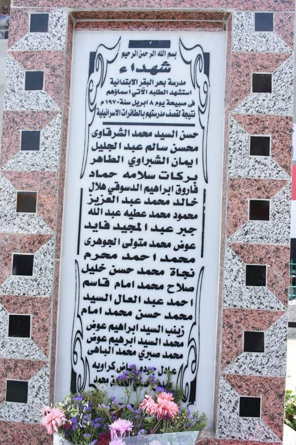 وتمر اليوم الاثنين ذكرى المجزرة التي وقعت في محافظة الشرقية، حيث قامت طائرات الفانتوم الأميركية يوم الأربعاء 8 أبريل عام 1970 بإطلاق خمس قنابل وصاروخين على المدرسة لتتناثر أشلاء الطلاب فى كل مكان، ويموت 30 طفلا ويصاب 50 آخرين.