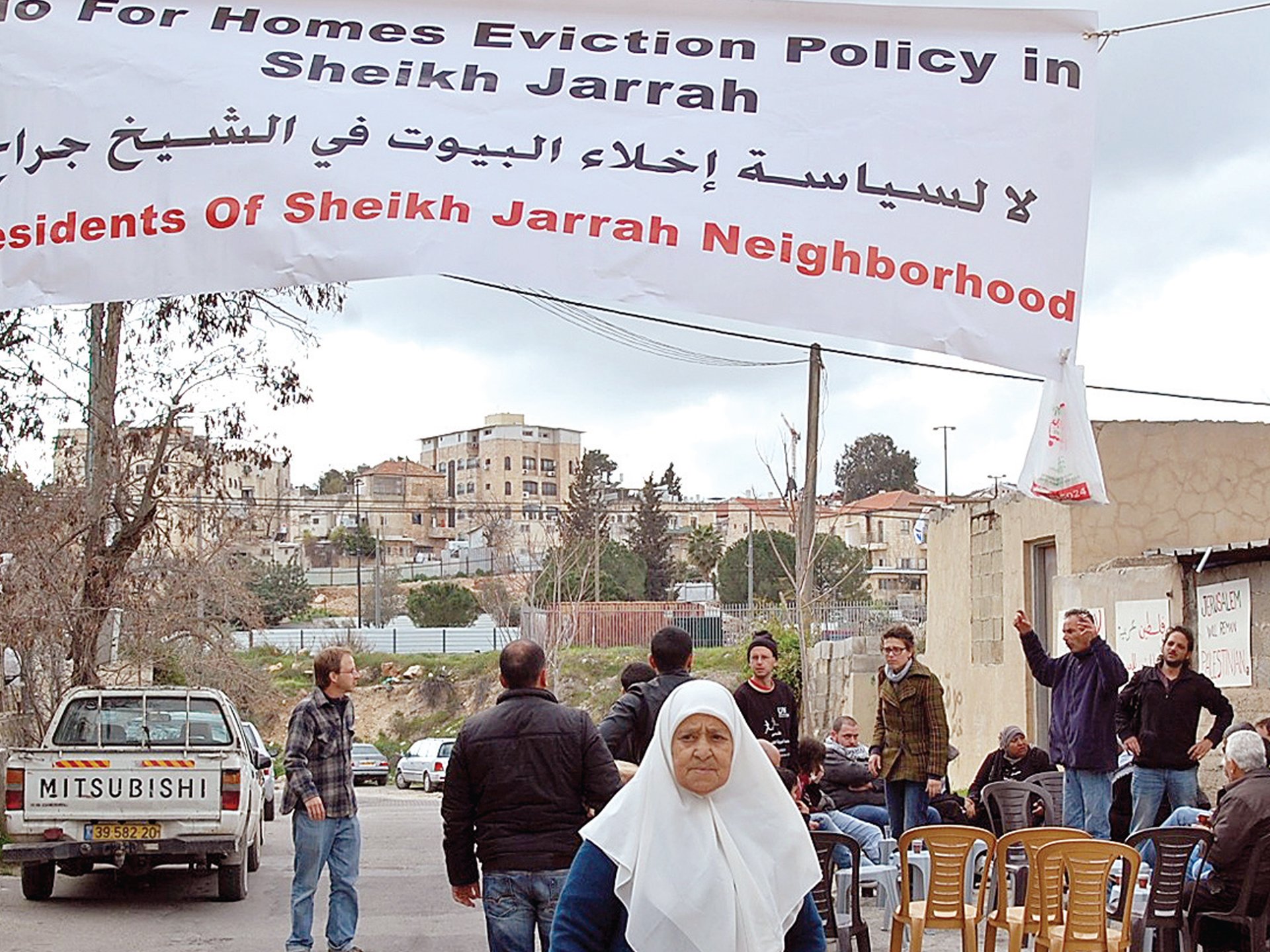 ويحتج الفلسطينيون على قرارات «إسرائيلية»، بإخلاء عائلات فلسطينية من منازل شيدتها عام 1956، التي تزعم جمعيات استيطانية أنها أقيمت على أرض كانت مملوكة ليهود قبل 1948.