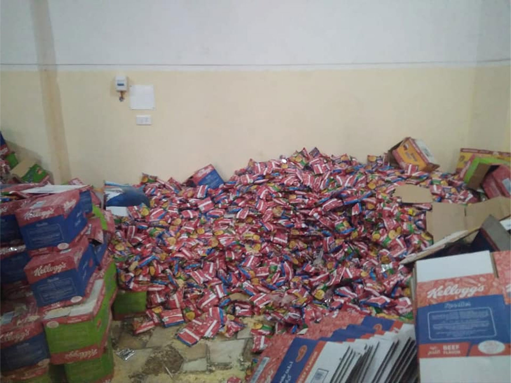 ضبط مخزن مكون من ٣ طوابق غير مرخص يقوم بتغيير تواريخ الصلاحية المنتهية لعبوات منتج «شعرية سريعة التحضير» وتم تحريز عدد 4500 كرتونة، تحتوي الكرتونة على 40 عبوة، جميعها منتهية الصلاحية، ويتم تدويرها في عبوات جديدة بتواريخ صلاحية جديدة.