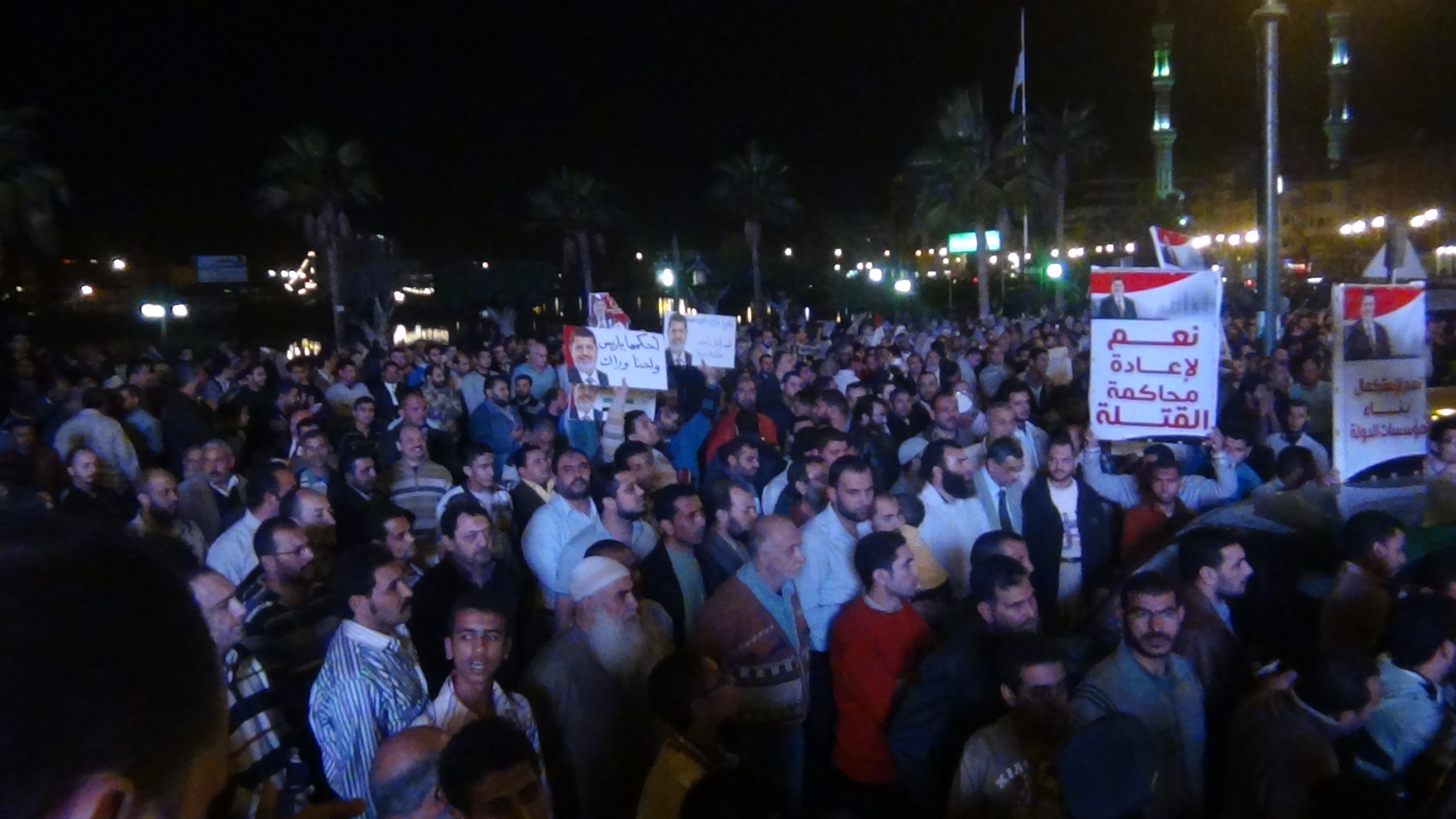 على الجانب الآخر تظاهر الآلاف من أهالي الإسكندرية أمس (الخميس)، بناء على دعوة من جماعة الإخوان المسلمين، وحزب الحرية والعدالة لتأييد الإعلان الدستوري الذي أصدره الرئيس محمد مرسى، والذي يقضي بإعادة محاكمات قتلة الثوار، وإقالة النائب العام، والقصاص لدماء الشهداء، وتحصين الجمعية التأسيسية للدستور، ومجلس الشورى.