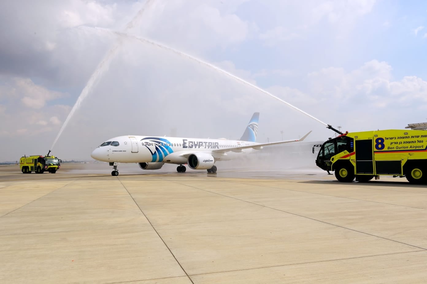 هبطت لأول مرة، الأحد، طائرة تحمل شعار «مصر للطيران» الناقل الوطني المصري في مطار بن جوريون الدولي في تل أبيب وسط إسرائيل، بحسب إعلام عبري.