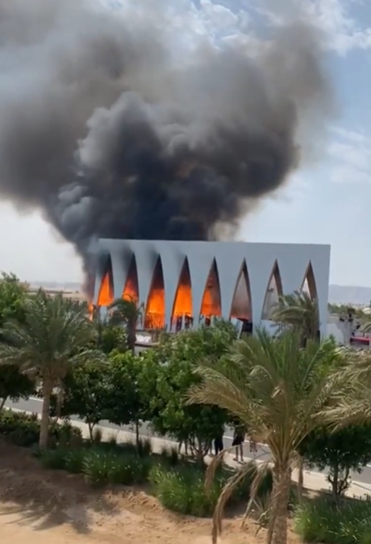 ونشر عدد من المواطنين مقاطع فيديو للحظة الحريق الذي التهم قاعة المهرجان القريبة من منطقة الغردقة في مدينة الجونة، المملوكة لرجل الأعمال نجيب ساويرس.