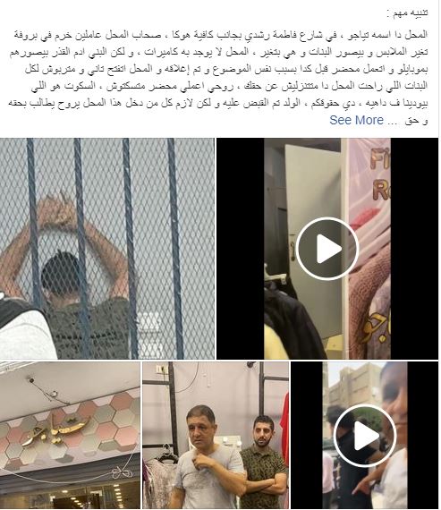 ونشرت فتاة تدعى مريم كامل، مقاطع فيديو للمتجر وتفاصيل ما حدث مع صاحب المحل المتواجد في منطقة الهرم بالجيزة.
