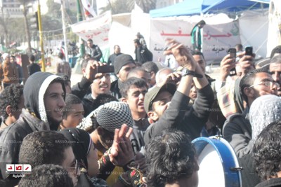 ومن جانب آخر تجمع العشرات من المتظاهرين وسط الميدان وقاموا بترديد بعض الهتافات المناهضة للرئيس محمد مرسي وجماعة الإخوان المسلمين ومنها " الشعب يريد .. إسقاط النظام "، و " قالوا حرية وقالوا عدالة .. البسوا أسود على الرجالة "، و" بيع بيع بيع .. الثورة يا بديع "، و " أنا مش كافر أنا مش ملحد .. يسقط يسقط .. حكم المرشد "، و " هما معاهم ضرب النار .. وإحنا معانا عزيز جبار "، و " ثوار أحرار هنكمل المشوار " .