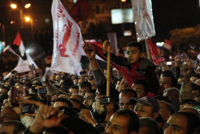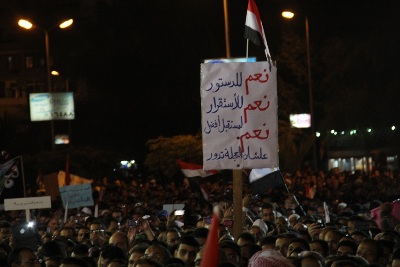 وردد المتظاهرين هتافات منها: "دستور مصر مش مسلوق.. دا أخد وقته بكل هدوء"،و "يلا يا أحمد يلا يا مينا.. الدستور بين أيدينا"، و" يا الله يا الله.. انصر مرسي واللي معاه".