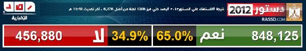 عدد المصوتين بالموافقة على الدستور 848,125 ناخب بنسبة 65%