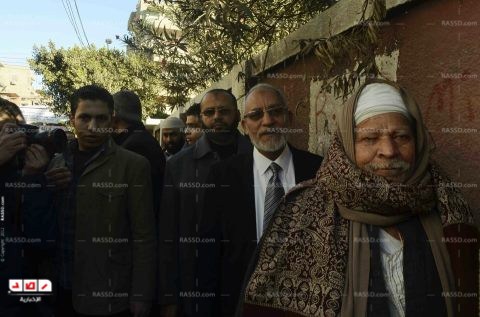 وأدلى الدكتور محمد بديع- المرشد العام للإخوان المسلمين- بصوته في لجنة مدرسة الحديثة للبنات بمدينة بني سويف في الساعات الأولى من التصويت.