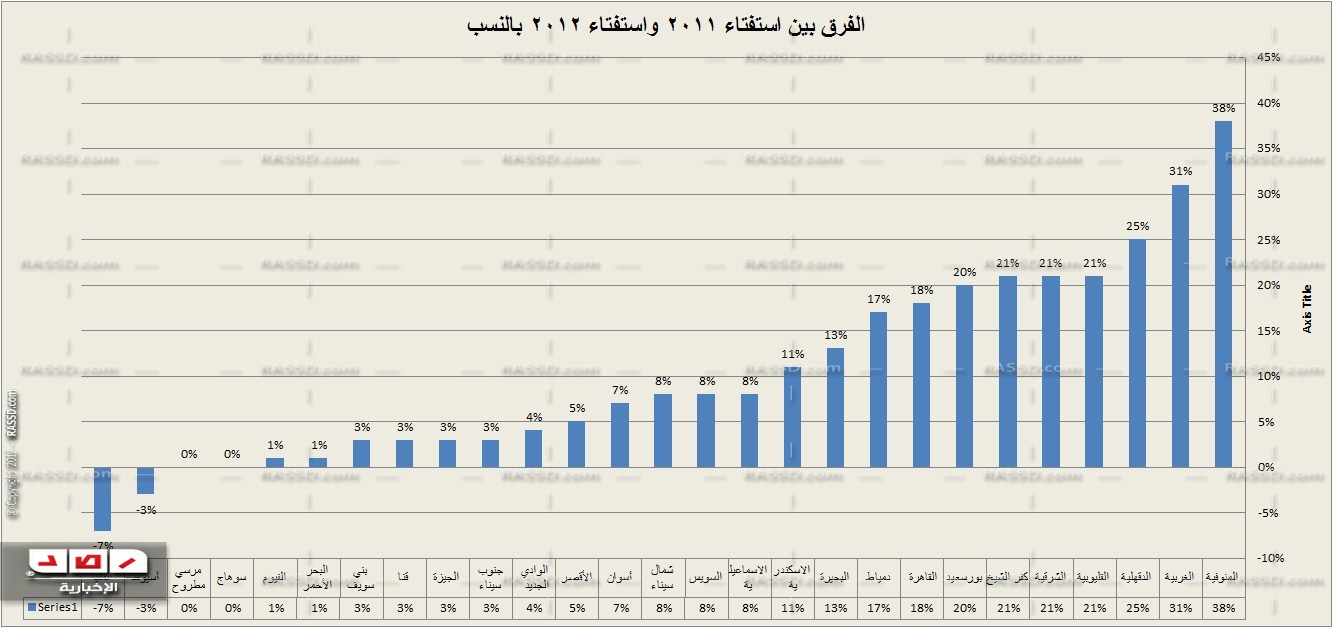 الغربية في استفتاء 2011 كانت نسبة الرفض 21% ثم زادت في انتخابات الرئاسة إلى61% ثم تراجعت إلى 52% في استفتاء الدستور 2012 بزيادة 31% عن استفتاء 2011 وتراجع 9% عن انتخابات الرئاسة