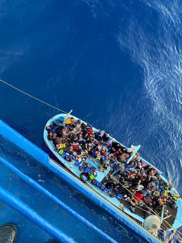 وأنه بعدما تم السماح لهم بالصعود تبين أن جنسياتهم ما بين سوريين ولبنانيين وفلسطيني الجنسية غادروا من لبنان في صورة هجرة غير شرعية متجهين إلى أحد الموانئ الأوروبية وعددهم 60 فرد ( ٢٤ رجل و ۱۲ سیده و ۲۰ طفل و4 رضع بعضهم كان في حالة إعياء شديدة حيث ظلوا لمدة أسبوع على متن القارب بالبحر، وعلى الفور قامت السفينة بتوفير مساحة للإعاشة لهم بالإضافة إلى تقديم كافة الاحتياجات اللازمة لهم، ولله الحمد لم تحدث أية خسائر في الأرواح وحالتهم جميعاً مستقرة.