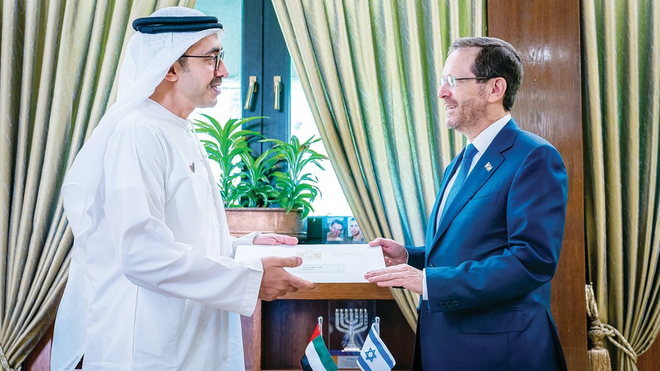 وأقام الوزير الإماراتي حفل استقبال رسمي في تل أبيب بحضور الرئيس هرتسوغ، وذلك بمناسبة الاحتفال بمرور عامين على التطبيع، وفقا لوكالة الأنباء الإماراتية.