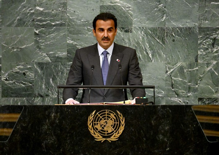 انتقد أمير قطر تميم بن حمد خلال كلمته بالجمعية العامة للأمم المتحدة عجز المجتمع الدولي عن محاسبة مجرمي الحرب في سوريا.